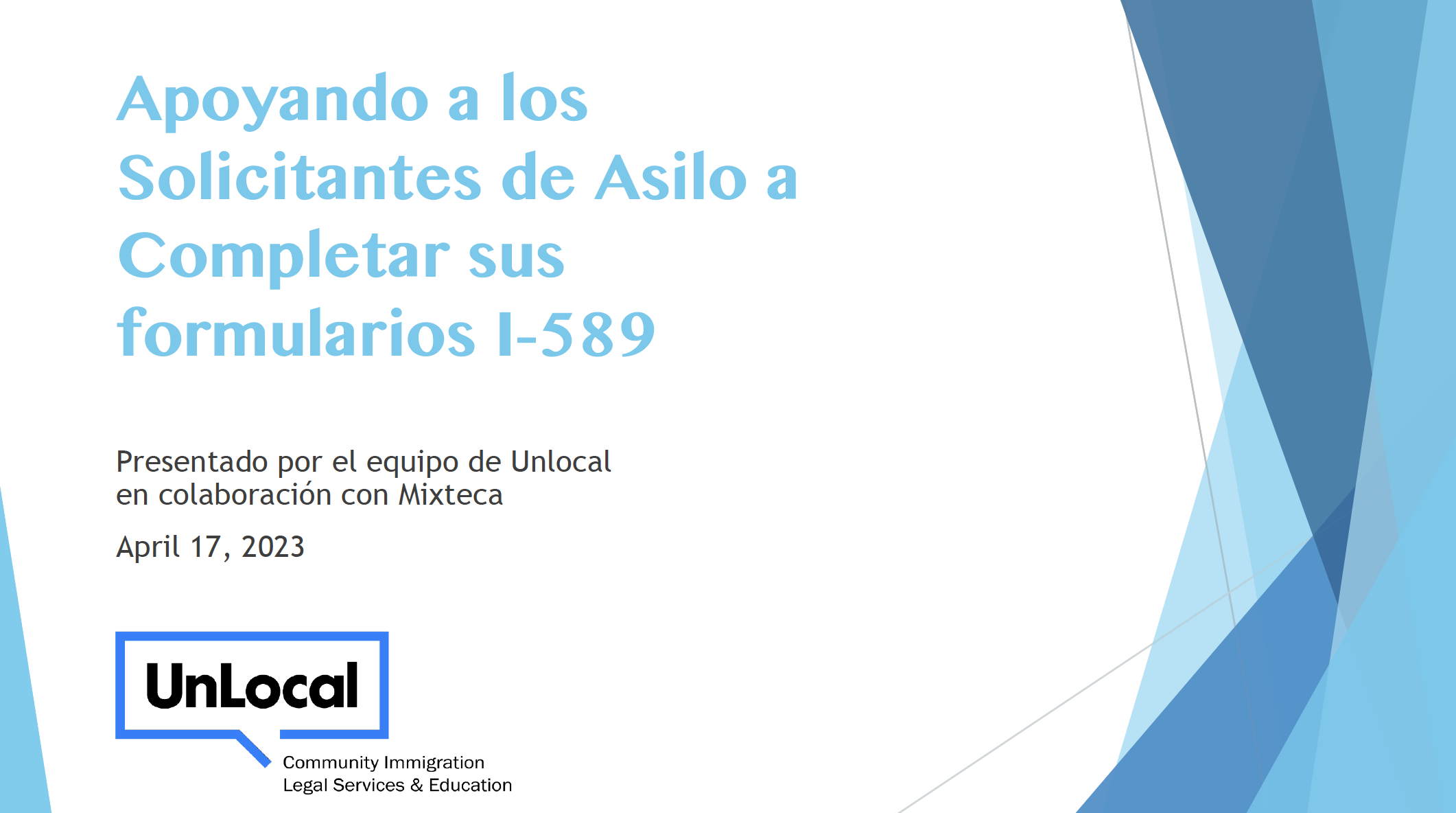 Apoyando a los Solicitantes de Asilo a Completar sus formularios I-589