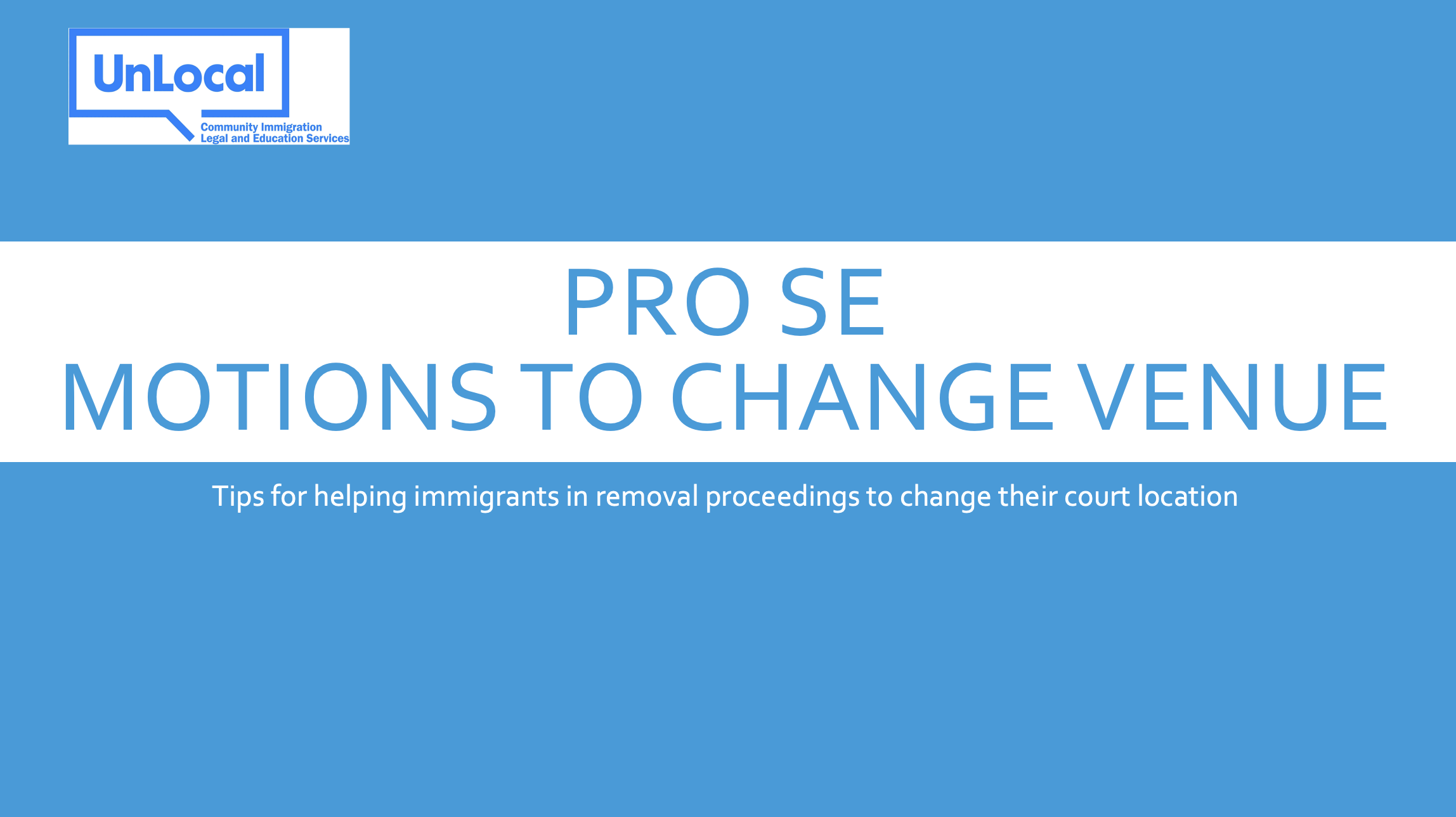 This Pro Se Plus Project training for community advocates and supporters covers the basics of motions to change venue in immigration court as well as what to know about changes of address with the court, USCIS, and ICE.